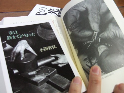 高校を卒業してから2002年までの51年間、町工場の旋盤工として働きながら執筆活動を続けてきた作家・小関智弘。 一昨年に文庫化された『春は鉄までが匂った』(ちくま文庫・本体価格780円)は、彼が40代半ばの頃の、1978年から79年にかけて書かれた町工場のルポルタージュである。 小関智弘がNC旋盤に悪戦苦闘しながら工場のルポルタージュを雑誌に連載していたこの時代、私はまだ小学生だったので記憶が曖昧なのだけれど、あの頃、鉄の匂いを嗅ぎながら下校していたような気がする。 当時、小学校の校門を出てすぐ向かいにあった家は、自宅に旋盤が据え付けられていた。 朝の登校時に閉じられているその家の正面にあるシャッターが、帰る頃には開いていて、小学生が見上げるくらいの高さの所に、使い込まれた旋盤が鎮座していて、ちょうど目の高さに鉄を削ったときに出る切粉(きりこと読む。「切子」と書く場合もある)の山があった。 切粉は、らせん模様に細工した細い棒状のお菓子に、黒ゴマをすり潰したものをまぶして、その上にはちみつをかけたように、小学生だった頃の私には映った(はちみつに見えたのは切削油)。 小学生の私には、鉄はあまい匂いがした。 これが学生(高専)時代になると記憶が鮮明になる。 現在はどうなのか知らないが、当時の高専は(工場)実習の授業があり(校舎内に工場が隣接されていた)、手仕上げ、フライス盤、旋盤、NC旋盤、マシニングセンタと、小関智弘が書いてきた町工場にある機械を(ほんとうにわずかな時間だったが)私は動かした経験がある。 そのとき、確かに鉄の匂いを感じた。小学生のときに嗅いだようなあまい匂いだった。 昔も今も、私は手先が不器用で要領が悪い。 学生時代の実習の授業も、嫌々やっていた。だから時が経てば、この授業のことはすぐに忘れてしまうだろうと思っていた。 しかし、小関智弘の文章を目にする度に、旋盤で鉄を削ったときの手に伝わる振動や音、匂いが鮮明に浮かび上がってくるから不思議だ。 『春は鉄までが匂った』の、表紙と文中の写真を撮影したのは、英伸三である。 1960年代、地方の農村に建てられた工場で、トランジスタを組み立てる農婦の手を撮影していた英伸三が、小関智弘の本の写真を手掛けていたとは思わなかった(小関の文章で使われる写真は、飯田鉄のものが多い)。 『粋な旋盤工』に刺激されたのか、この本の英の写真は、じっくりと丁寧に焼き込まれた黒が締まったモノクロプリントだ。写真家という表現者というよりプリントの職人(小関流に言えば『粋なプリント工』)になったつもりで焼いたのだろうか。 モノクロのプリントをほとんどしたことがない私では、英伸三の写真を見ても、小関智弘の文章のようには匂いが伝わってこないところがある。 しかし、リアリズム写真に傾倒した人や、フィルムを現像したりプリントをした人ならば、英伸三の写真を見て、『春はバライタまでが匂った』という感覚を味わえるのかもしれない。 (やはり暗室特有の、酢酸のすっぱい匂いだろうか) 錆色の写真・2へ |