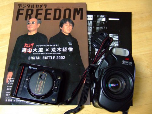 前回のかためのコラム、『世紀末の詩(うた)・1』を書いたあと、続きを書こうかと思って、西井一夫の『暗闇のレッスン』(みすず書房・1992年)や『20世紀写真論・終章』(青弓社・2001年)を読もうとしていたのだが、梅雨入り前だというのに、曇りや雨ばかり続く天気にやられ、読む気力が沸かないまま、ずるずると5月が終わった。 この1ヶ月、何をしていたかというと、愛用のハーフサイズカメラ(フジ・ツイングTW−3)と、500円で買ったジャンク品のハーフサイズカメラ(京セラ・サムライ×3.0)の電池交換をしていた。 たかが電池交換をするのにと思われたかもしれないが、実際問題、ひと月近くかかってしまったのだからしょうがない。 フジのツイングは、リチウム電池を使用する。しかし、このカメラが出た当時(1985年)、リチウム電池は市販されていない。 だから、このカメラは電池交換用の蓋(フタ)はなく、メーカーに持っていかなければ、電池交換ができない。 メーカーで交換してもらうと高くつきそうなので、自分で交換しようと思い、ホームセンターで半田鏝(ハンダゴテ)を買って、インターネット上で電池の種類を調べたり(市販のものが使えた)して、不器用(ぶきよう)な手つきで電池を半田付けをした。 京セラ・サムライが発売された頃(1989年)には、リチウム電池が発売されていたので、電池を開け、新しい電池を入れただけでサムライは動いた。 だが、なぜか、液晶画面にはバッテリ切れの警告が表示される。どこかにデート機能用の電池が別に入っているらしい。 これもインターネット上でかたっぱしから調べて、ようやく電池の入っている部分が判った。 京セラ・サムライ用に取り付けるレンズキャップとフィルタ(49ミリのものが使える)と電池を買いに、ひさしぶりに上野のヨドバシカメラへ行ってみると、カメラ売り場は2階に移っていた。 以前は、カメラとカメラ用品の売り場は1階と地下に分かれていたのだが、フィルムカメラの製造中止が相次いだため、売り場を縮小する形で2階へ追いやらてしまったようだ。 別に驚きはしなかったが、やはり、売り場のほとんどがデジタルカメラで占められ、フィルムカメラは片隅(かたすみ)に数台、コンパクトカメラが置かれているだけだった。 私自身は、フィルム写真がどうとこか、デジタル写真がこうとかいうことに対して、かなり無頓着で(むとんちゃく)で、あまり深く考えたことがない。 写真を撮影する人が、どんな目的で何を撮り、撮った写真をどうしたいのか、そうした意図が明確なら、自ずと撮影する機材が決まってくるはずで、また、撮影する人の意図が必ずしも明確でなくても、撮影していくうちに自分に合った機材というのが見つかるはずである。 結果的に、その機材がデジタルかフィルムかの違いだけではないかと。 ただ、デジタルカメラとほぼ同じ速度(スピード)で、著しく発展していくインターネットや携帯電話などの、情報伝達の場の多様化によって、写真を見る人間の思考パターンそのものが、デジタル化されてきているような危惧(きぐ)は持っていた。 自分自身が記憶している視覚情報と共通する写真に対しては、瞬時(しゅんじ)に反応するが、共通項のない写真にはまったく興味を示さない、未知の写真に対して「見る眼」を持たない、未知の写真を想像(イメージ)する力のない人たちが(私を含めて)、増えていると実感する。 (こうした部分は、意識してあまり深く考えないように、見て見ぬふりをしてきた) 帰ってきて、いつか捨てようと思っていながら、そのままほったらかしにしていた本や雑誌が入った段ボール箱を、押入れの奥から引っ張り出した。 お目当ての雑誌は、毎日ムック『デジタルカメラFREEDOM』(毎日新聞社・2002年)である。 飯沢耕太郎が『デジグラフィ』という言葉(定着しなかったが)を使う以前の、まだまだデジカメ黎明(れいめい)期だった頃の、森山大道と荒木経惟のデジカメ対談が掲載(けいさい)されているのだが、すでに二人はデジタルカメラの本質を捉えている。 『デジタルカメラFREEDOM』の対談の中で、荒木経惟は、よく彼が口にする「写真とは「死」(風景)である」という持論を展開し、「でも絶対に風景にならなそうだなぁって思うのが、このデジタルカメラだね」と発言している。 この後の二人の対話を抜粋(ばっすい)する(手抜きですみません)。 荒木 「写真っていうのは「死」だから。逆にデジタルは生きてる時間を撮るのにいいかもしんない。だから、デジタルカメラじゃ、写真は撮れない。そういうもんを撮るんじゃないんだよ」 森山 「むしろこう、被写界深度を感覚するっつうの。無茶苦茶深いじゃない。だって、わぁーっと寄れるし、引けるわけだから、その間にいろいろな何かがちょっと見えるよね」 荒木 「そうか」 森山 「写真とは違う意味でね。だから気になる。その見えない世界がさ」 荒木 「じゃ、そうだ。「空の間」だ。デジタルは空間。うちらは「時の間」、時空だから