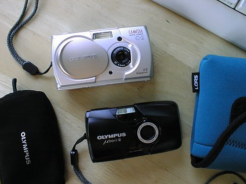 とある通勤ラッシュの帰りの電車。まわりの迷惑も気にせず、幅広の大きなカメラバックを肩に下げた、太り気味、七三分け、黒ぶちメガネ。手には『少年ジャンプ』の青年。 青年と僕との、目と目で通じ合う(?)沈黙の会話が始まる。 (ぼく)「おいっ!」 (青年)「えっ? 僕?」 (ぼく)「そのバッグ……」 (青年)「えっ? わかる? そう、ドンケのカメラバッグなのよ」 (ぼく)「……」 (青年)「えっ? カメラ? そう、キャノンD60。買い換えちゃったのよ。やっぱり、もう、デジカメの時代でしょ? 手ブレ補正のズーム付けて、もうアイドル、バリバリ撮りまくり」 (ぼく)「…………」 (青年)「今日、MEGUMIちゃんの握手会の帰りなのよ。えっ? 見たい? 胸はあんまり写ってないよ。顔しか撮らないの僕。正統派のアイドルスナイパーだから」 ここで、沈黙が途切れる。 (ぼく)「(突然声を荒らげて)おいっ! さっきから、そのバッグがジャマだってんだよっ!」 (青年)「えっ? 僕?」 (ぼく)「マンガなんて読んでるんじゃねぇぞ、テメェッ! バッグを前に抱えろっ! この●▲◆■(あまりにも下品なので割愛)野郎っ!!」 と、今回の話ですが、僕はとても気が短い、という話ではなくて、バッグの中のカメラの話です。 僕も、先ほどのカメラバッグの青年並みに荷物が多いので、普段持ち歩いているリュックを申し訳なさそうに前に抱え、気弱そう(?)に電車に乗っている。 リュックの中身は、図書館で借りた本やコンビニで買った雑誌、ちっちゃいパソコン(このHPの原稿書きや、人からデジカメのデータをもらうときに使用)が入っている。 さらに、非常に汗っかきの僕は、電車の中ではセーターやトレーナーをこのリュックに押し込んでいるので、リュックは常にパンパンの状態。さらにさらに、ここで青年のように一眼レフカメラを入れるとなると、腰痛で歩けなくなってしまう。 ここの写真の集まり(JRP荒川流域支部)の女性陣たちは、みんながみんな、バッグの中に一眼レフを入れて、スーパーで買い物をしながら、軽々とあっちこっち歩き回っている。元気だ。とても真似できない。 そういう訳で(どういう訳で?)、現在、僕が使っているカメラは、パンパンのリュックからすぐに撮り出して写せる、オリンパスC−2(デジカメ)とμ−U(マジカメ)なのである。 しかも、体力も根性もない僕は、こんなちっちゃいカメラをリュックに入れるのも億劫で、持ち歩かないことが多い。であるからして、僕は、相変わらず寡作な写真家である(女性陣から若いくせに軟弱だと怒られそう。トホホ)。 |