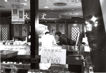 夜の街角の窓越しに映る写真を掲載しました。