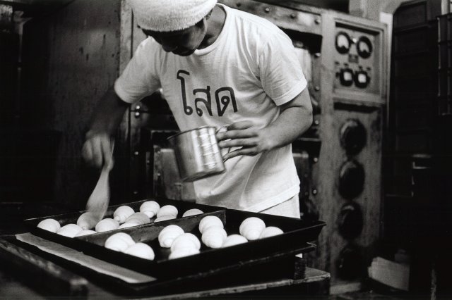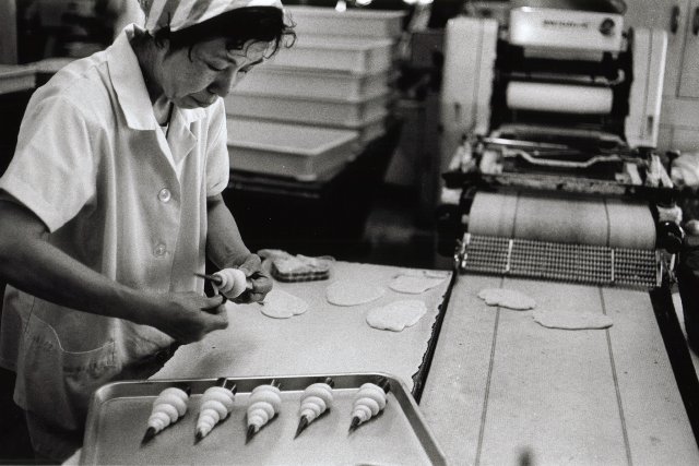 地元のパン屋さんの作業風景の写真を掲載しました。
