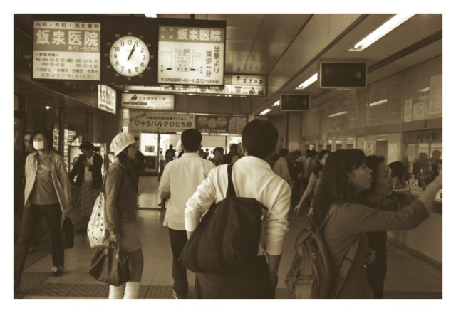 ![]() その当時に作った写真集です。 ![]() 牛久駅の改札付近でしょうか。 ![]() CanoScan FB 636U (追記) 使っていたスキャナは、コンパクトで軽く、USBポート経由で電源を供給するタイプのためコンセントいらずで、なにかと重宝した。 フィルムのスキャンには対応していなかったので、ベタ焼き(コンタクトプリント)から写真を取り込んでいた。 一般的なCCD方式でなくCISという方式のだったことと、光学解像度が600×1200dpiだったためか、ベタ焼きのなかの1コマをスキャンするとピントが甘く感じられた。 (メーカーのほうは、こんな使い方をされるとは思っていなかっただろう) ただ、それをインクジェットプリンタで光沢のないマット紙で印刷すると、ソフトフォーカスをかけたような雰囲気になるため、気に入って使っていた記憶がある。 今回、あらためて、フィルムから別のスキャナでスキャンしてみると、フィルム中央に一直線にまたがって傷がついていた。性能が上がり、解像度が高くなると、よけいな部分までクッキリと見えてしまうから恐ろしい(笑)。 パソコンやスキャナ、プリンタ、デジカメ、コピー機の発達で、写真入りのポスターやチラシ、フリーペーパーが巷(ちまた)にあふれかえってしまっている。 本来なら目を楽しませてくれるはずの写真も、ここ1・2年は目障りに思えてくることがあったり、なかったりしてしまう。なんだが目がチカチカする。 (たんなる疲れ目か?) |
